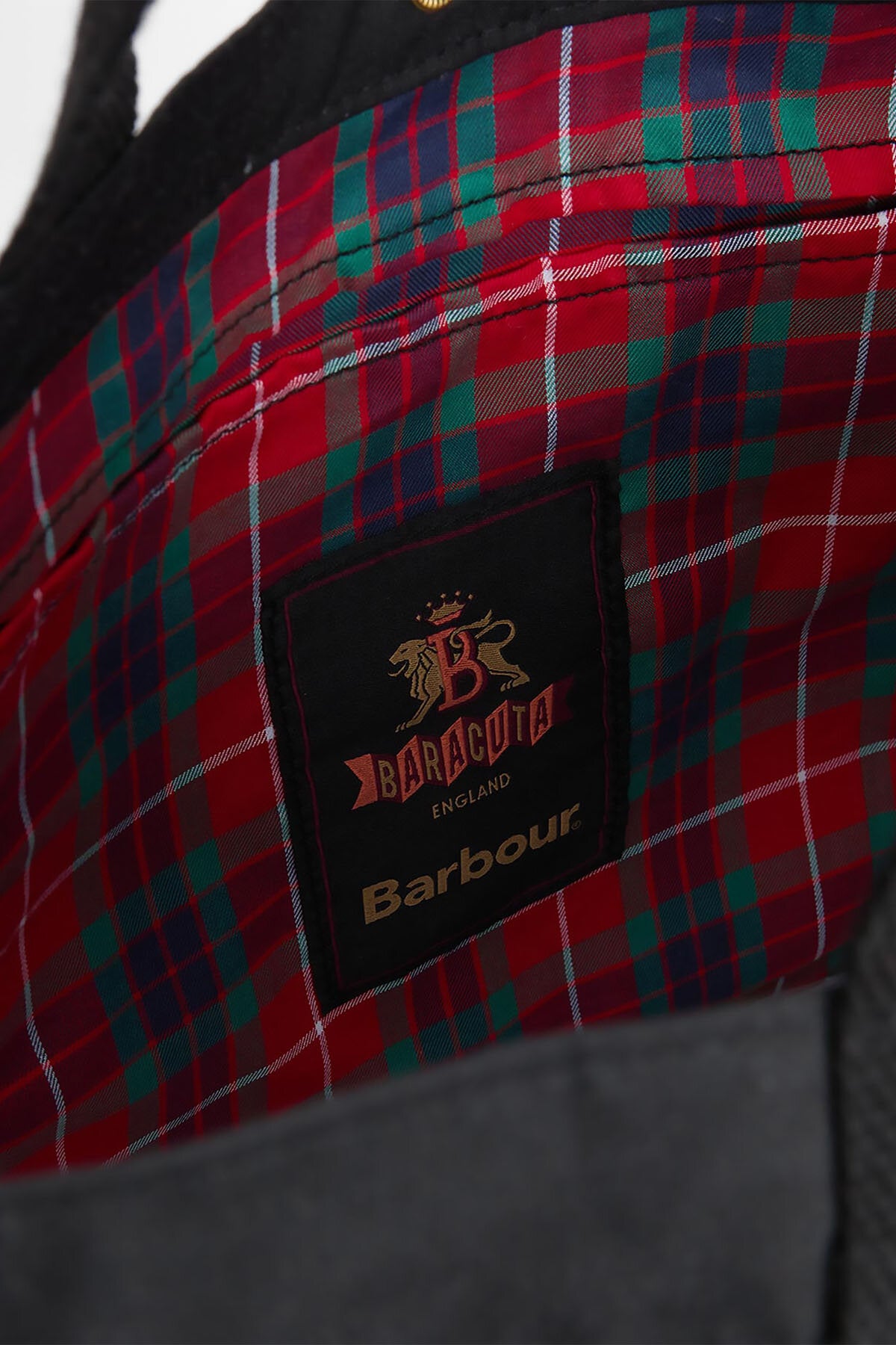 Die Kollektion Barbour x Baracuta wäre nicht komplett ohne ein passendes Accessoire – in dieser Saison ist die Barbour x Baracuta Tote Bag der perfekte Hingucker. Diese Tasche mit Druckknopfverschluss ist mit denselben Northern-Soul-Patches versehen wie das Barbour x Baracuta Northern Sweatshirt und die Porton Waxed Jacket und mit Doppelbranding abgerundet.