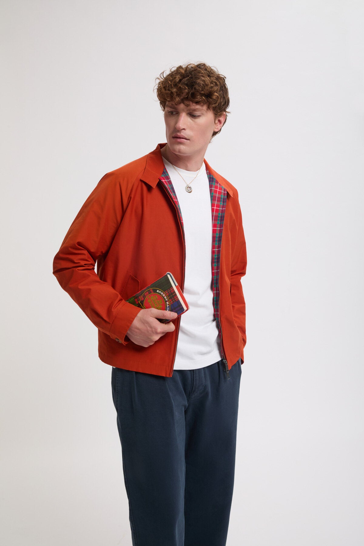 Unser berühmter G4 Baracuta Cloth wurde aktualisiert und verfeinert, um der zweiten Ikone von Baracuta einen Hauch von Stil und Funktionalität zu verleihen. Das neue Modell verfügt über Raglanärmel wie bei der klassischen G9 und eine weichere Passform, die die Jacke noch bequemer macht. Die elastischen Rippbündchen in der Taille und an den Ärmeln wurden durch verstellbare Knopfleisten an den Seiten und an den Ärmeln ersetzt. Aber keine Sorge, andere Originalmerkmale des G9 wurden beibehalten - wie der Stehkragen, die Schirmrückenpasse und unser charakteristisches Fraser-Tartan-Futter. Lassen Sie Ihren inneren Briten raus und gehen Sie stilvoll in unserem G4. Kombinieren Sie ihn mit unserem gestrickten Rundhalspullover für zusätzliche Wärme, wenn Sie mit Ihren Freunden durch die Stadt ziehen. Made in the UK.