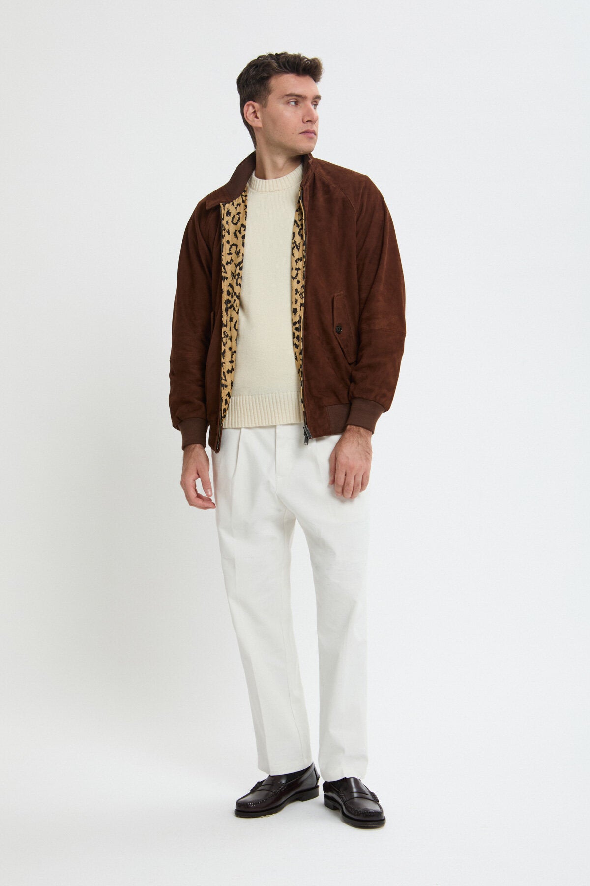 • Die G9 Suede x Wacko Maria kehrt in einer markanten Animalier-Edition zurück – in drei ausdrucksstarken Farbvarianten: Black, Tobacco und Chocolate. Das Außenmaterial besteht aus hochwertigem Baracuta-Wildleder, während das unverwechselbare Leopardenfutter im Inneren unverkennbar die Attitüde von Wacko Maria versprüht – abgerundet durch ein dezentes Detail in Form einer Metallkette. Sowohl das Design als auch die Passform wurden aktualisiert und bieten einen lockereren Schnitt für einen weicheren Unisex-Look.