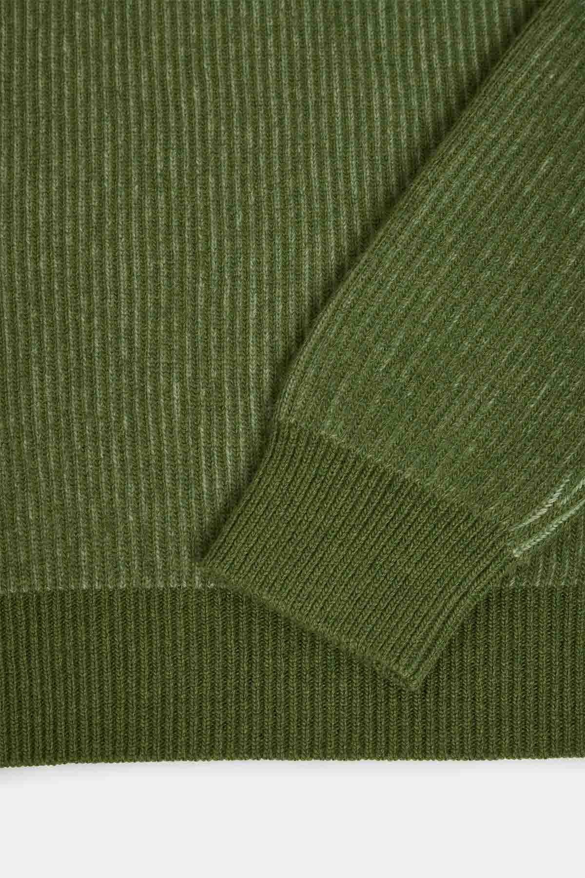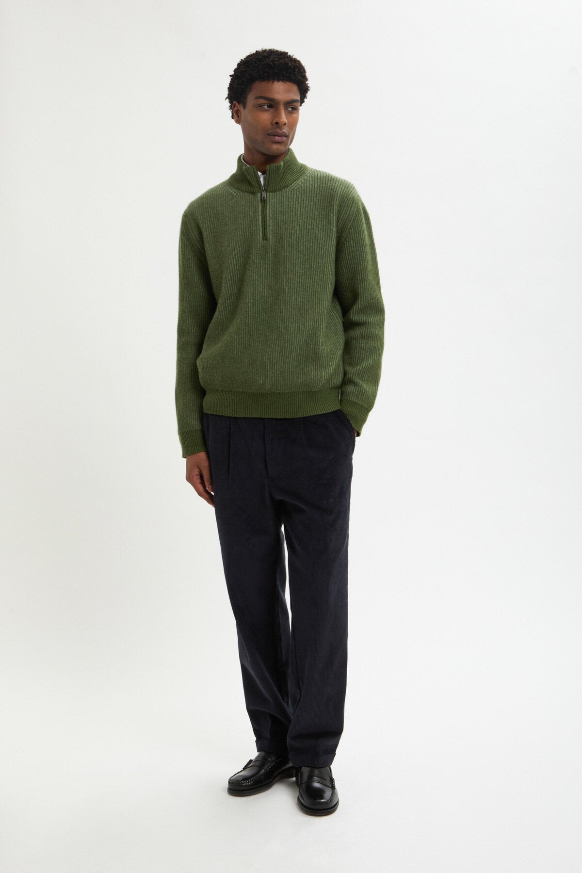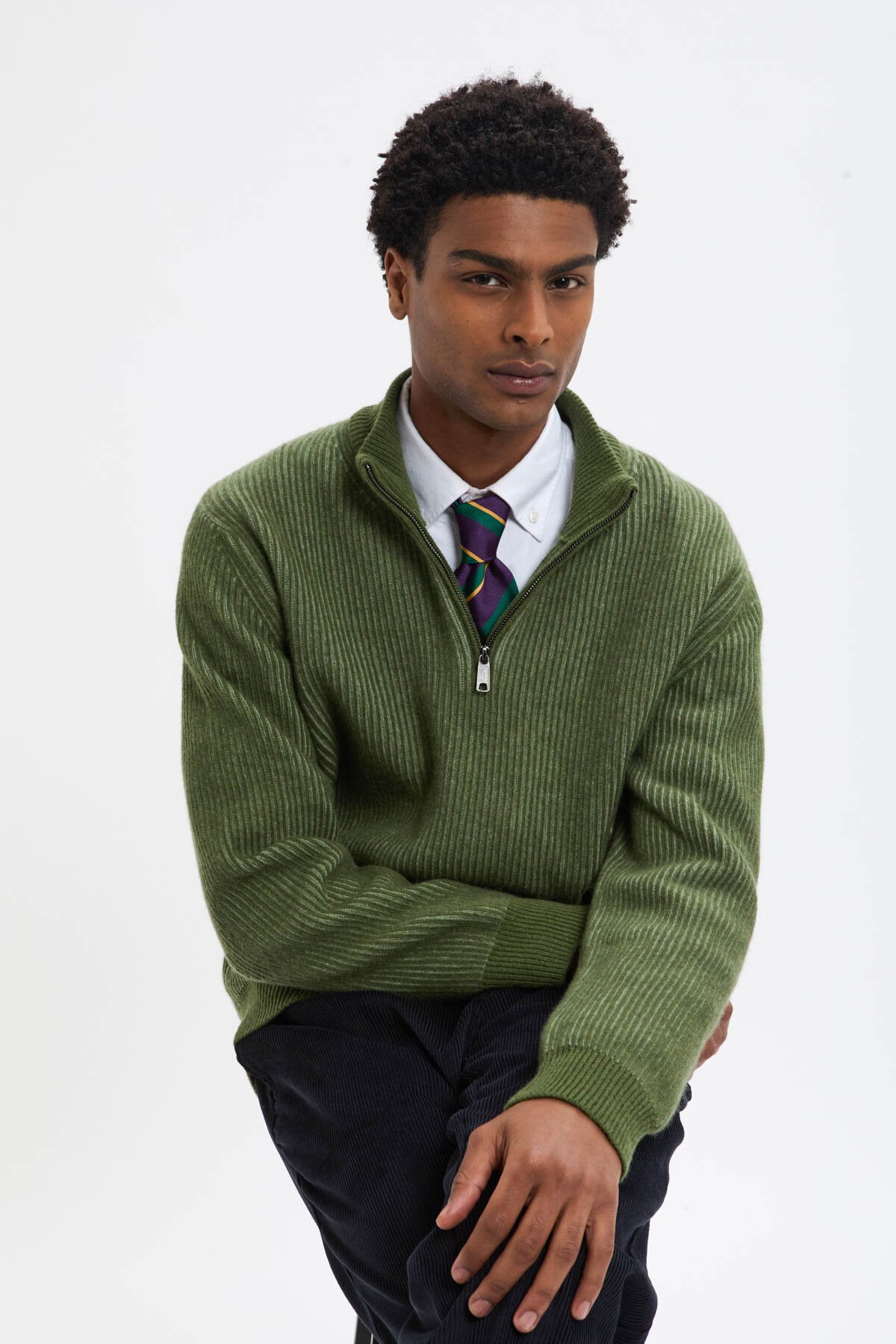 • Gerippter Stehkragen mit halbem Reißverschluss