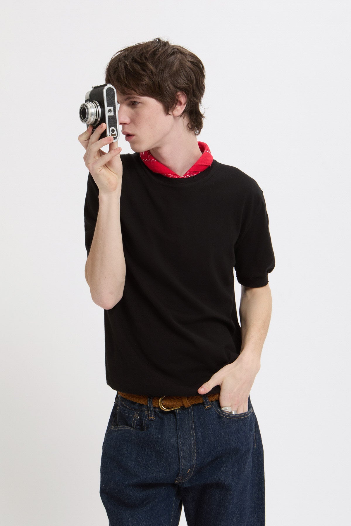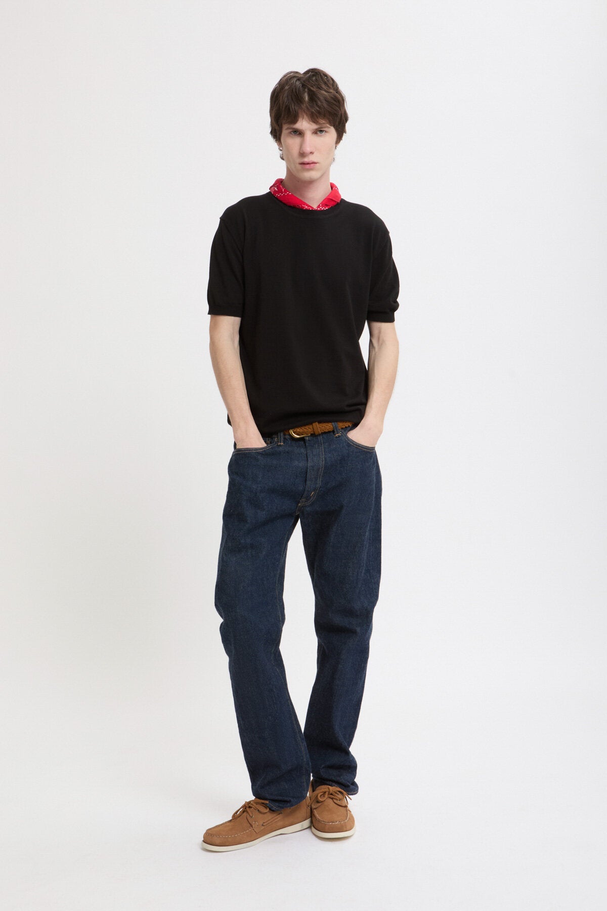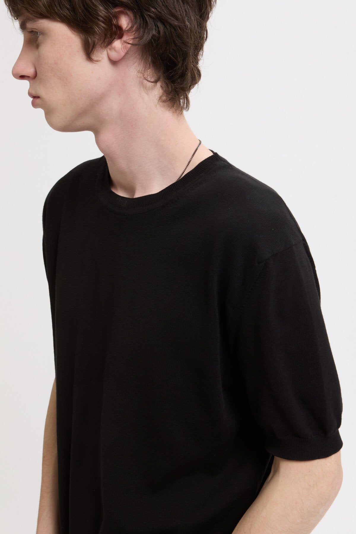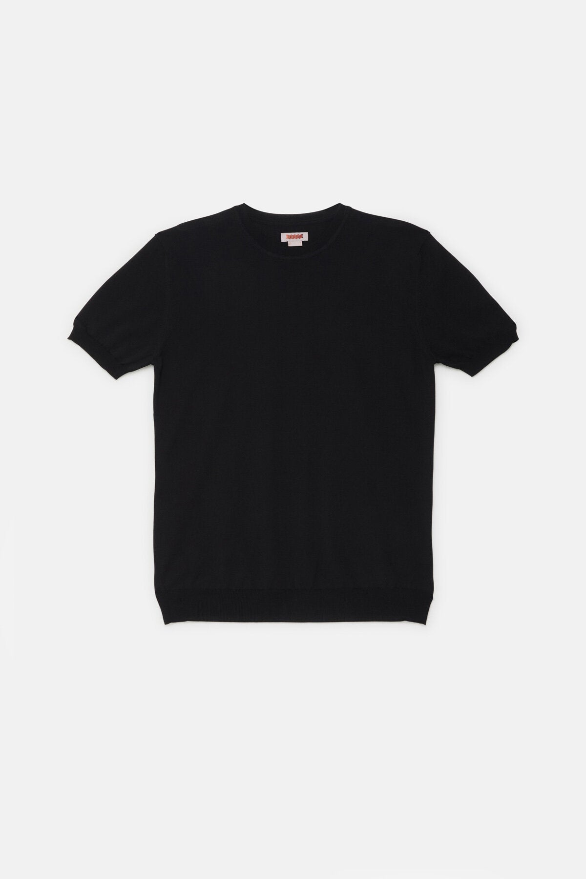 Das Strick-T-Shirt besteht aus 100 % Baumwolle und bietet ein weiches, atmungsaktives Tragegefühl und ein sauberes, strukturiertes Finish.
