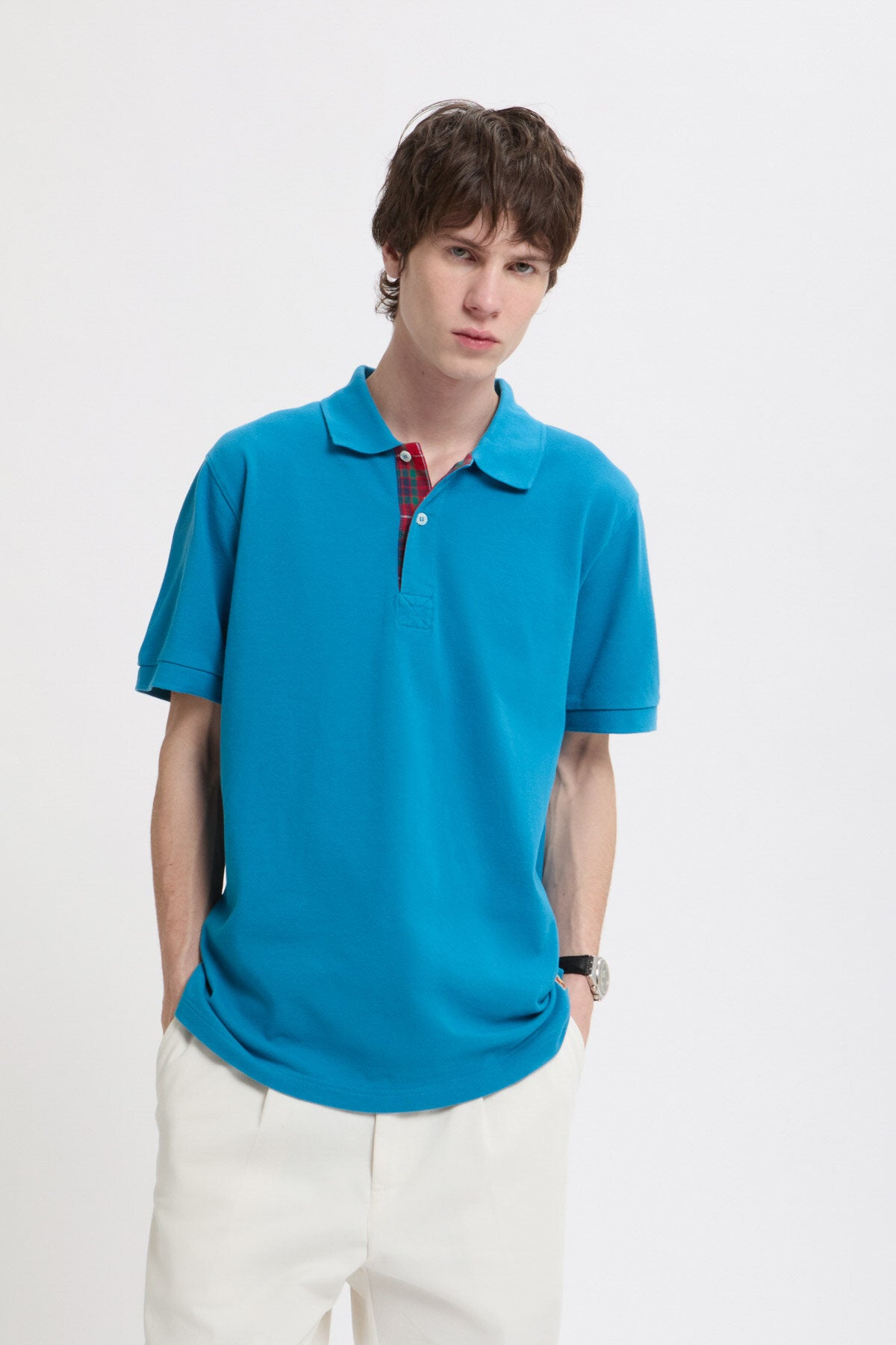 Das Tartan Placket Polo ist aus 100% Baumwolle gefertigt. Ein dezentes Fraser‑Tartan‑Detail entlang der Knopfleiste verleiht dem Modell einen Hauch von Baracutas Heritage.