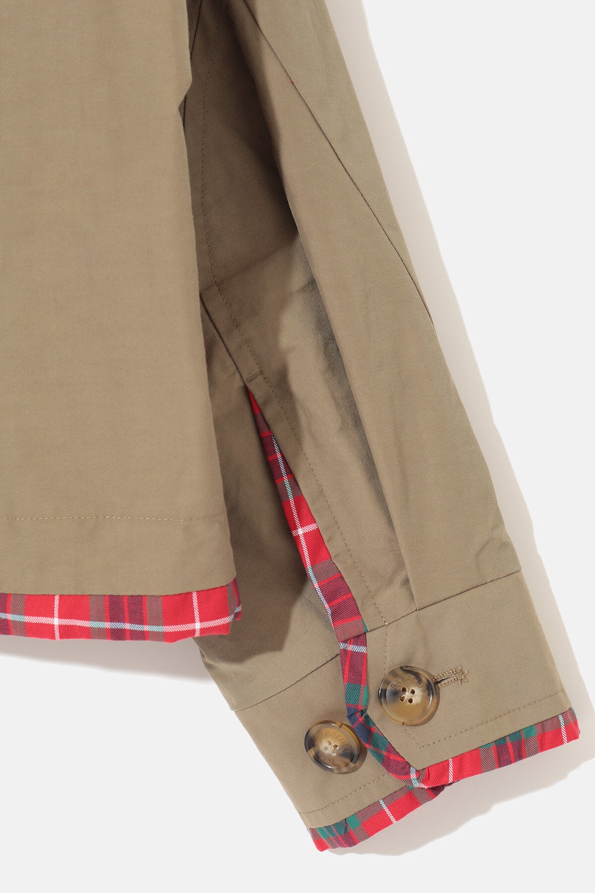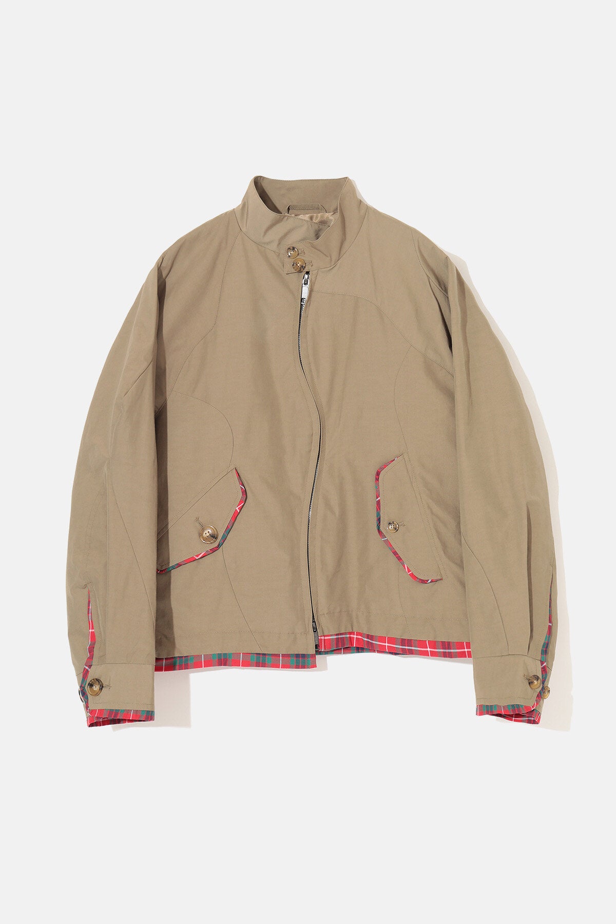 • Die Undercover x Baracuta G9 Damenjacke interpretiert die klassische G9 Harrington Jacke mit der unverwechselbaren, unangepassten Handschrift von Jun Takahashi neu. Tief in der britischen Tradition von Baracuta verwurzelt, bricht diese limitierte Edition mit Konventionen: Der geschwungene, asymmetrische Reißverschluss erzeugt eine dynamische, außermittige Linie und verleiht der ikonischen Silhouette der G9 ein neues Profil. Die Fraser-Tartan-Details sind eine Hommage an das Originalmodell. Erhältlich in drei Farbvarianten.
