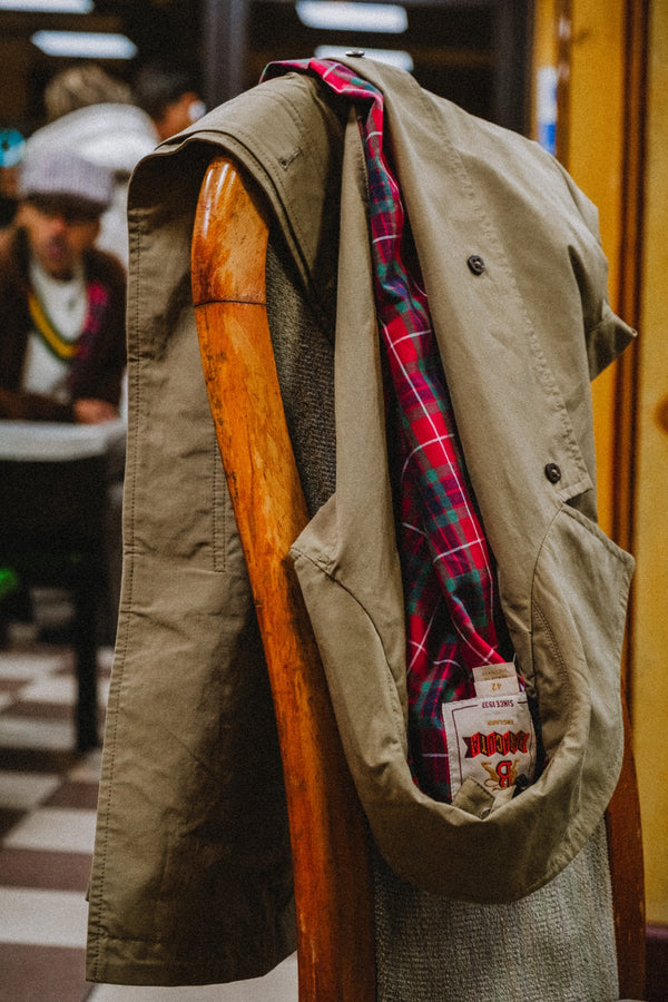 L'intérieur du manteau est partiellement doublé de notre emblématique Fraser Tartan. Pour plus de polyvalence, il est doté d'une doublure matelassée amovible : polyester avec piqûres en diamant d'un côté et polaire douce de l'autre – idéal pour les températures changeantes et les vêtements saisonniers.