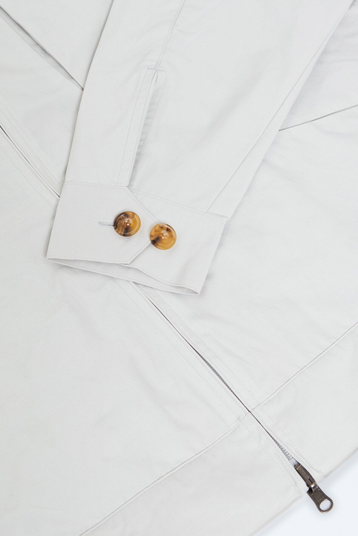 • • Col montant boutonné, fermeture à deux boutons