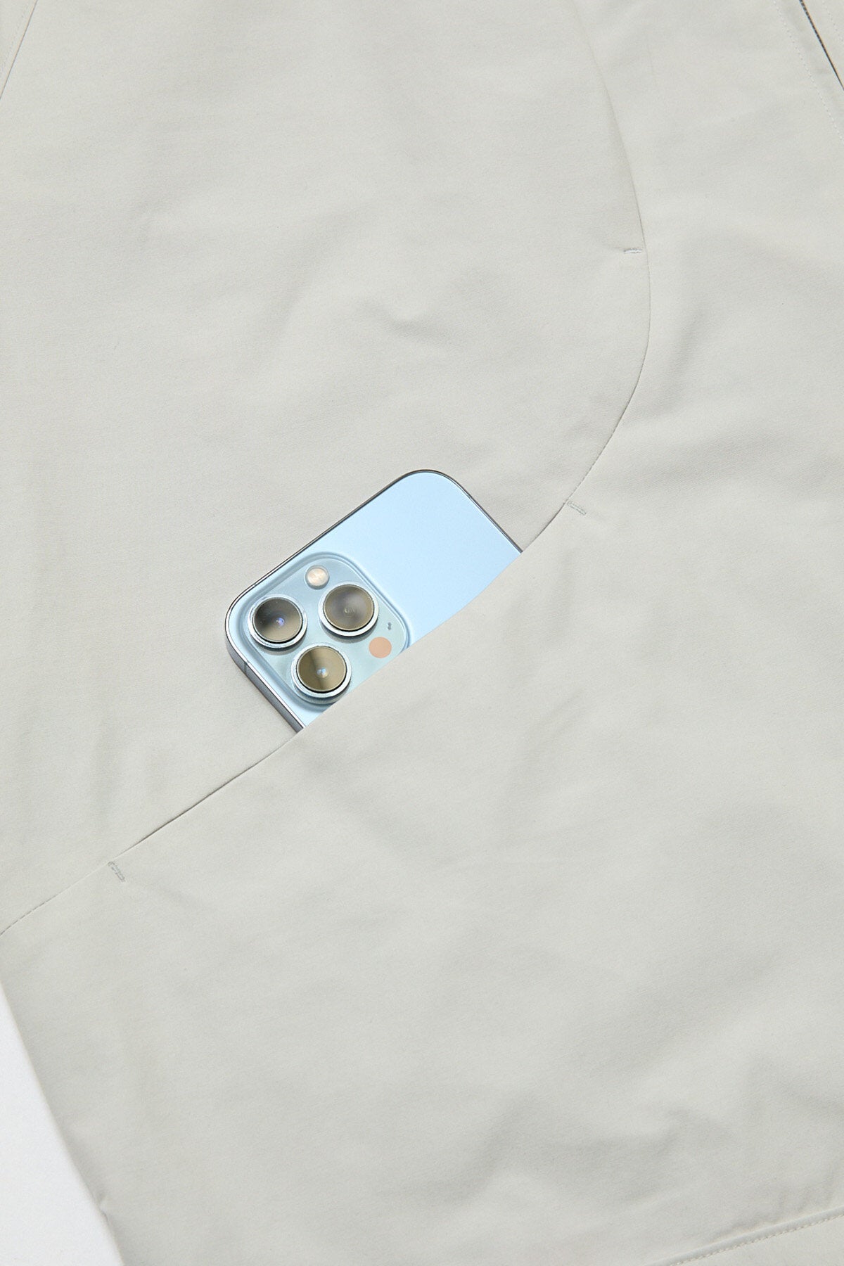 La conception unique des poches frontales – qui suivent les courbes naturelles du devant de la veste, se poursuivent sur une fermeture pressionnée à hauteur de la poitrine jusque sur des poches ouvertes en dessous – constitue l’une des touches les plus distinctives de ce modèle, créant ainsi une fusion audacieuse entre forme et fonction.