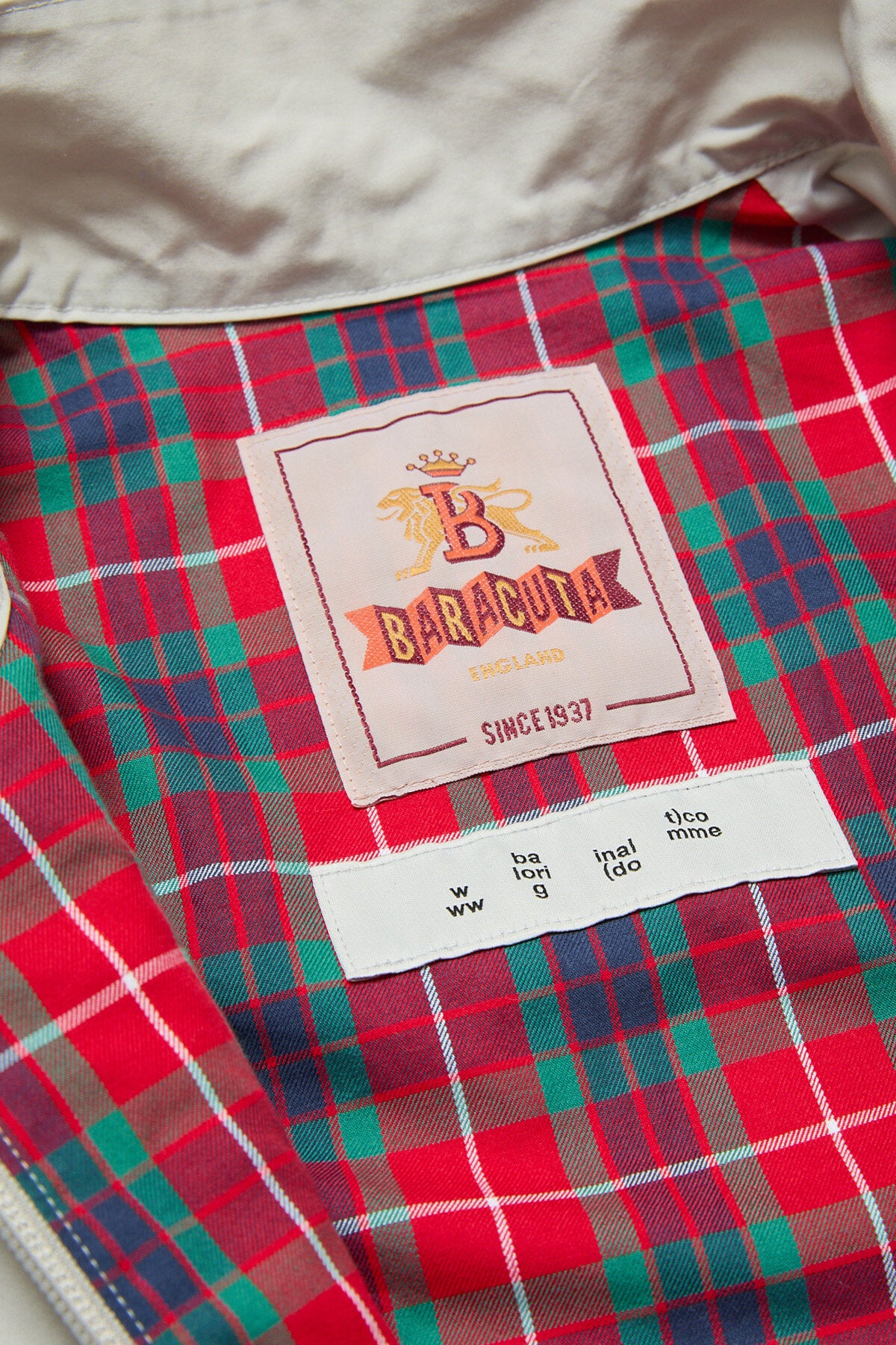 • La veste G9 Baracuta x BAL fusionne sans effort l'héritage emblématique de Baracuta et l'éthique du design contemporain de BAL. Fabriquée avec précision, cette collaboration rend hommage aux éléments intemporels du modèle G9 original, notamment l'empiècement dos en forme de parapluie, le col montant boutonné avec fermeture à deux boutons et la doublure classique en Fraser Tartan, tout en introduisant des caractéristiques innovantes pour le client moderne.