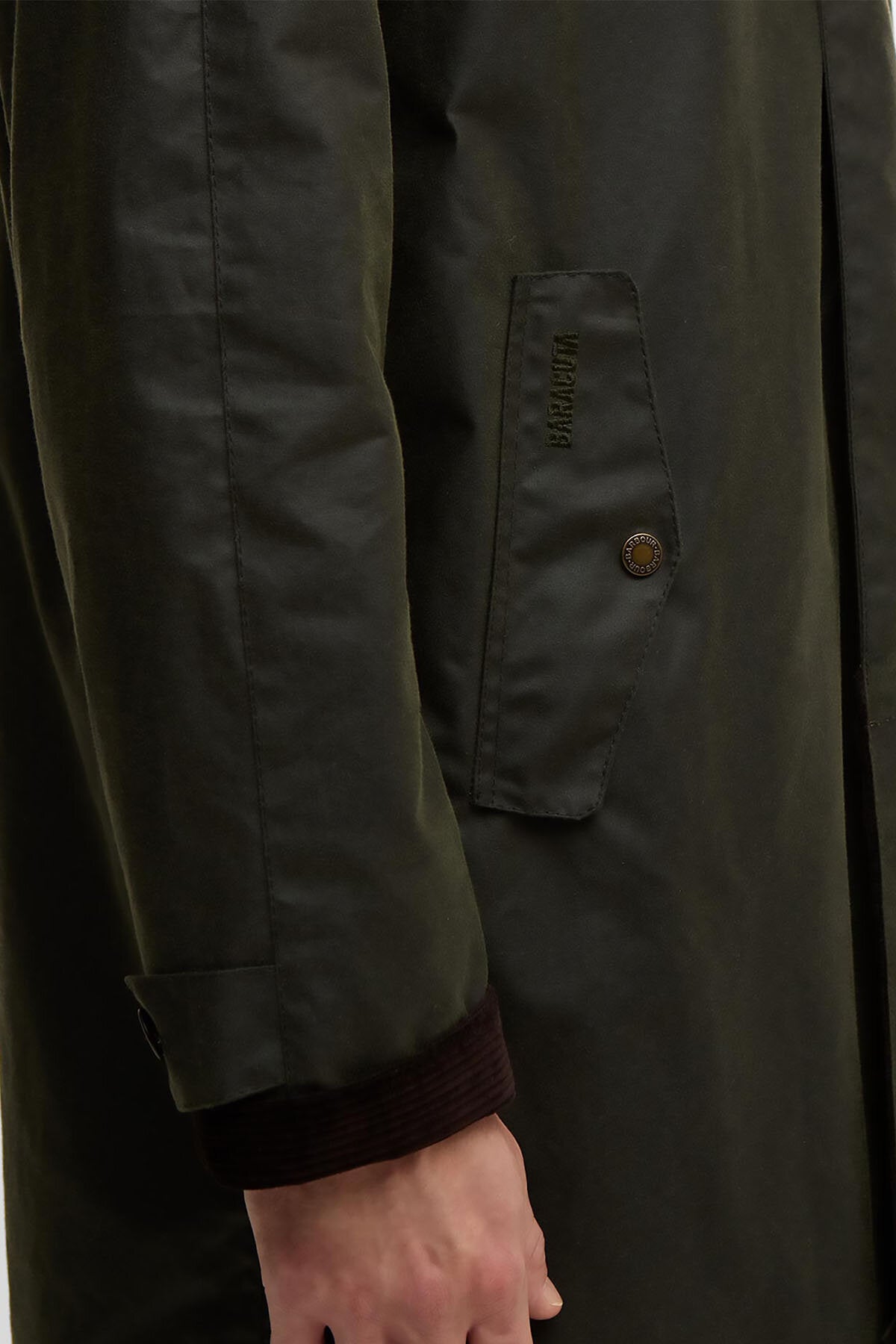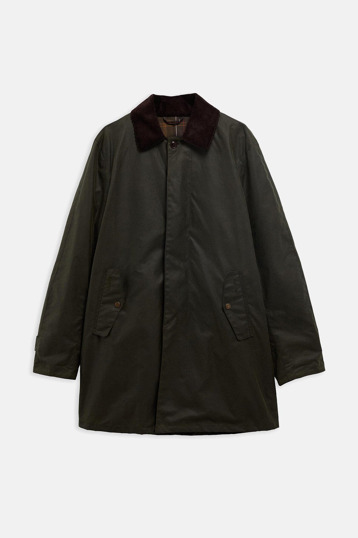 Nouveauté de la collaboration, le car coat ciré Tyne Barbour x Baracuta s'inspire d'un classique de Baracuta, le G10. Ajoutant une touche distinctive du design Barbour, ce manteau est fabriqué à partir de notre coton ciré Sylkoil de 170 g et détaillé avec un col en velours côtelé 8 raies pour un look résistant et intemporel. Parfait pour être porté par temps pluvieux, ce manteau est doté de manches rapportées devant et raglan derrière ainsi que d'un empiècement au dos en forme de parapluie.