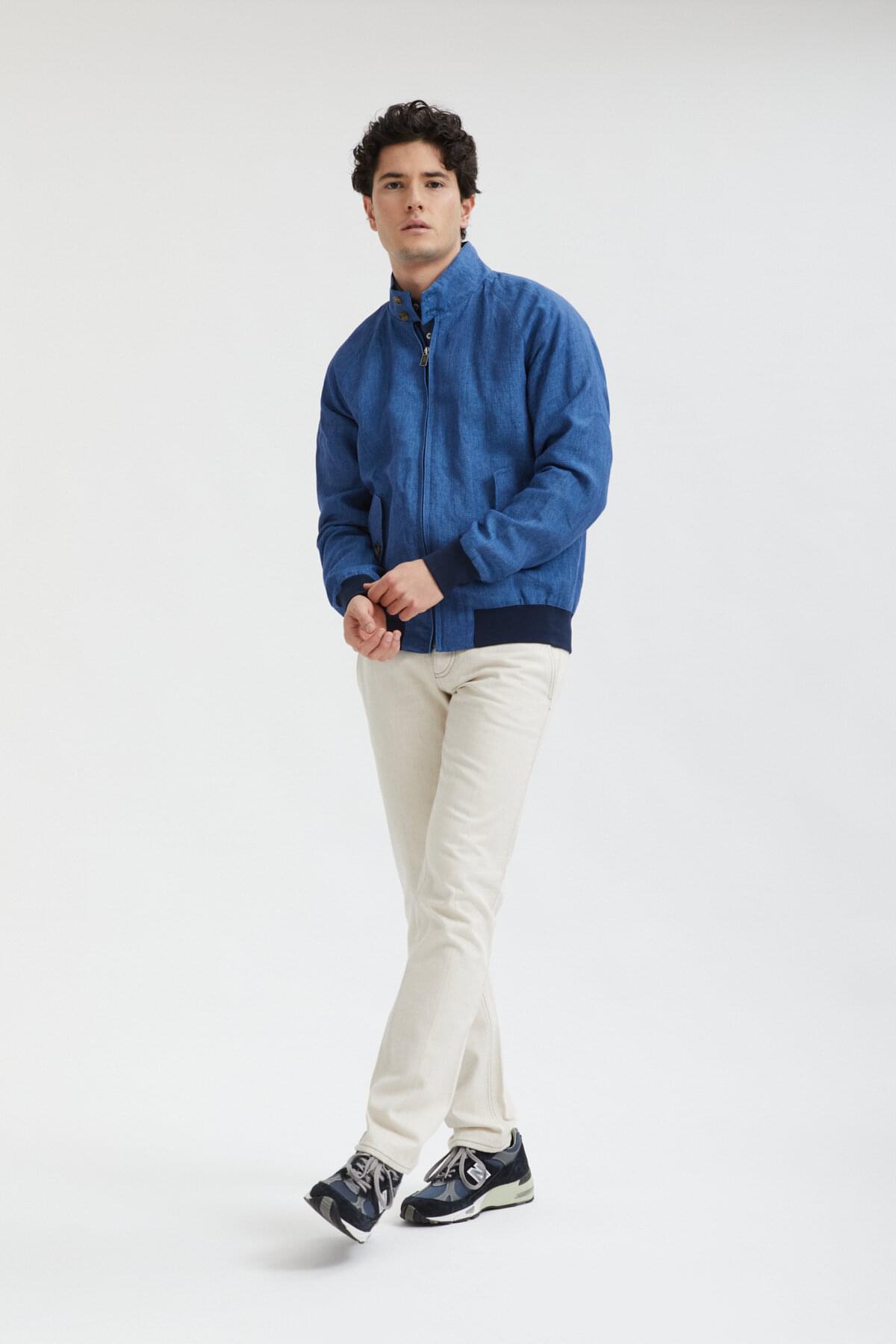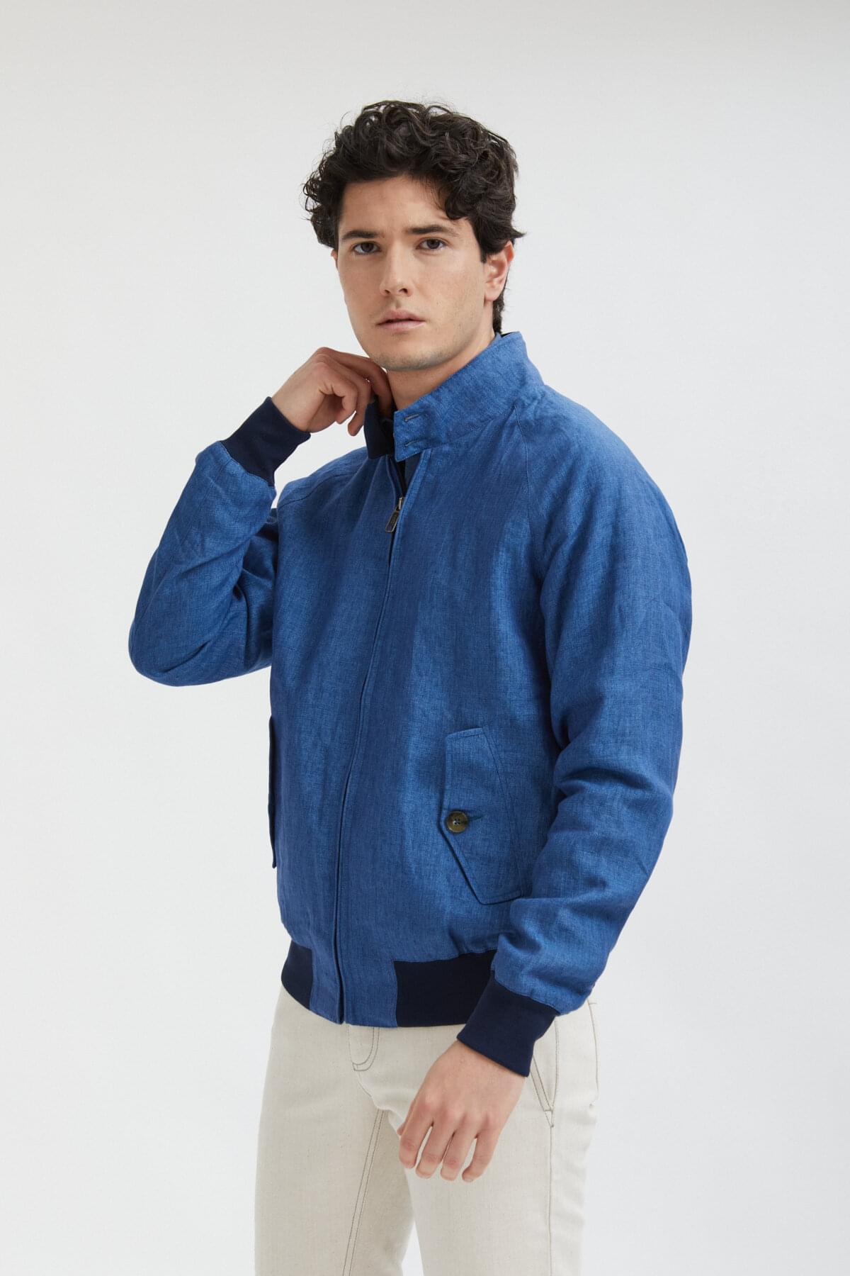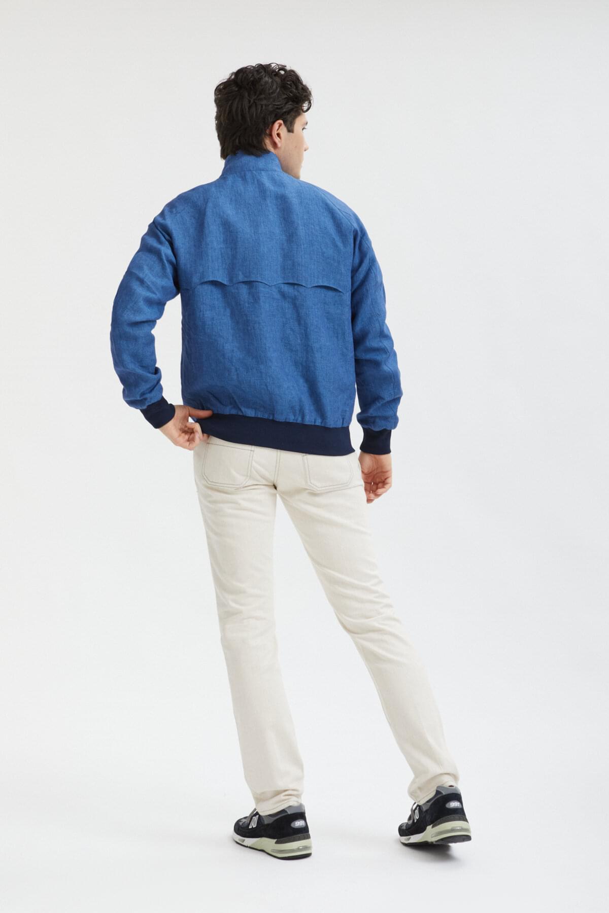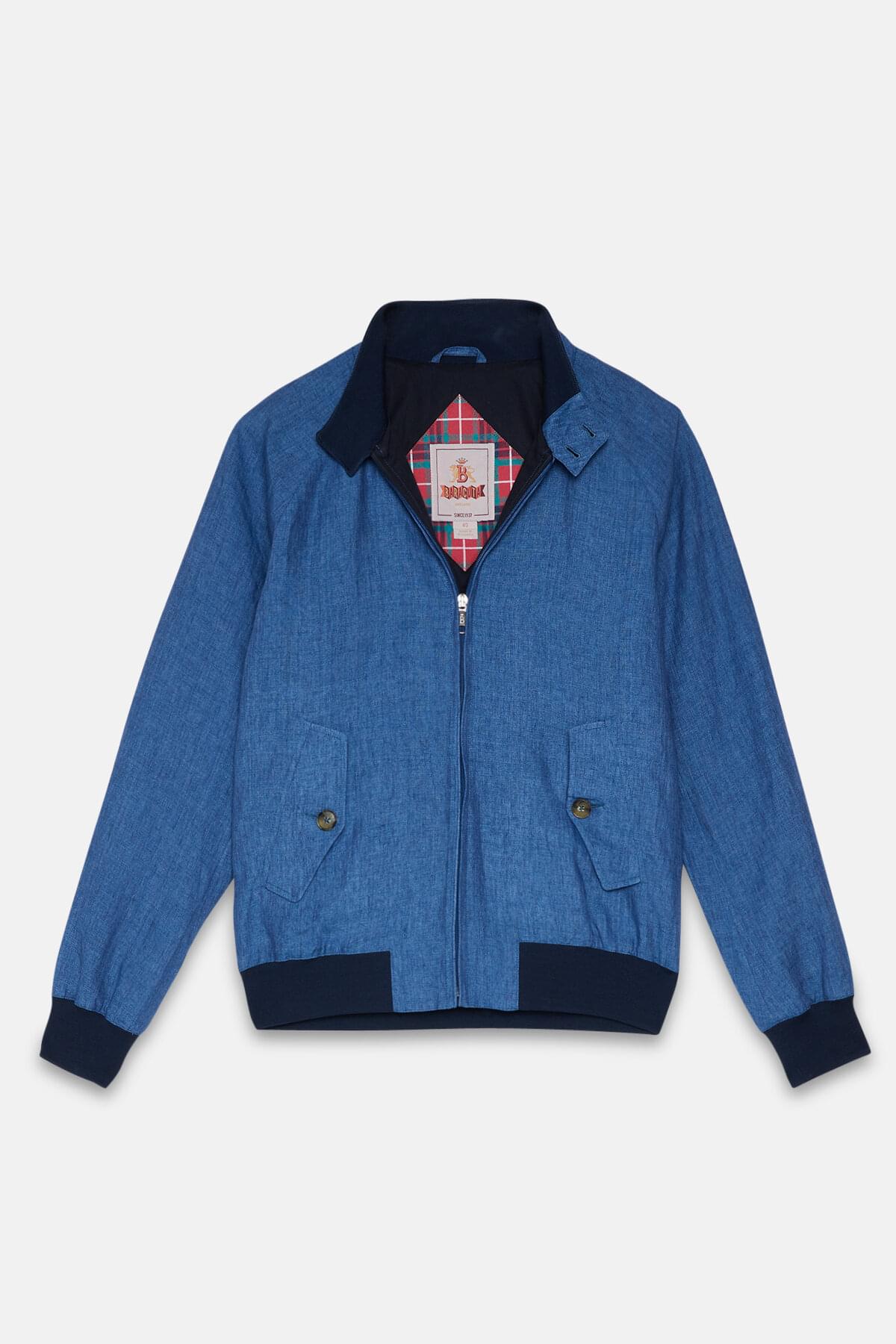• The G9 Linen is a fresh take on the classic Harrington Jacket, but with a few tweaks to take it up a notch. The jacket maintains all the G9's timeless features like the umbrella back yoke, slanted front pockets, and the signature two-button Baracuta dog ear collar. However, what sets it apart is the 100% pure linen fabric that gives it a contemporary, worn-in appearance. The lining is made of soft 100% cotton, so it feels comfortable to wear. The jacket is completed with some premium touches, such as the metal Baracuta logo on the zip and the exclusive Diamond Fraser label. You'll be mad to let this one slip by!