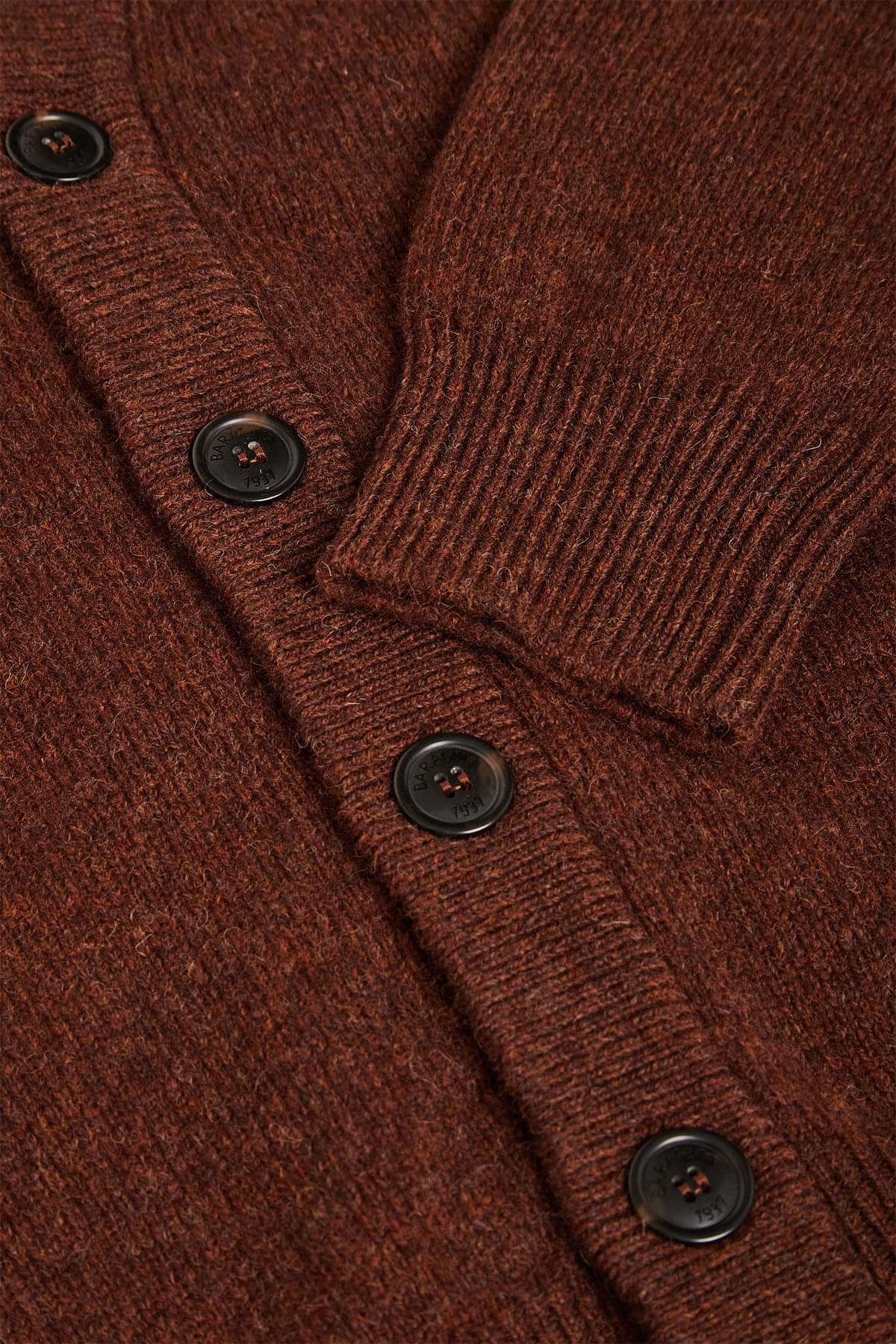 • Ajoutez une touche de sophistication intemporelle à votre garde-robe cette saison avec notre cardigan Shetland, confectionné avec maestria en 100 % laine vierge. Cette pièce, qui exprime subtilement le style britannique, présente une encolure en V classique et une fermeture à boutons avec logo au centre, proposant un équilibre parfait entre tradition et raffinement moderne. Le logo Baracuta brodé ton sur ton sur la poitrine ajoute une touche d'authenticité subtile mais incontournable. Conçu pour le confort avec une coupe classique, il se superpose sans effort à une chemise impeccable et s'associe parfaitement à votre veste Baracuta préférée. L'une de ces pièces qui fonctionne parfaitement, quelle que soit l'humeur. Une brillance sobre sous forme de gilet.