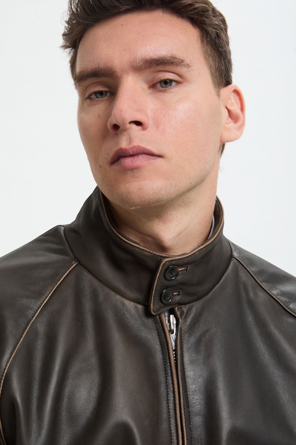 • Leather Jackets are an absolute must in everybody's wardrobe. For starters they are iconic, and secondly they go with absolutely everything, making them the perfect staple item. Baracuta has come out with a more roomie leather version of the classic G9 Harrington. It is made from high quality leather and is lined with our signature Fraser Tartan. Its fit gives it a more relaxed and spacious silhouette. The jacket also features light padding to cope with even the coldest of days.