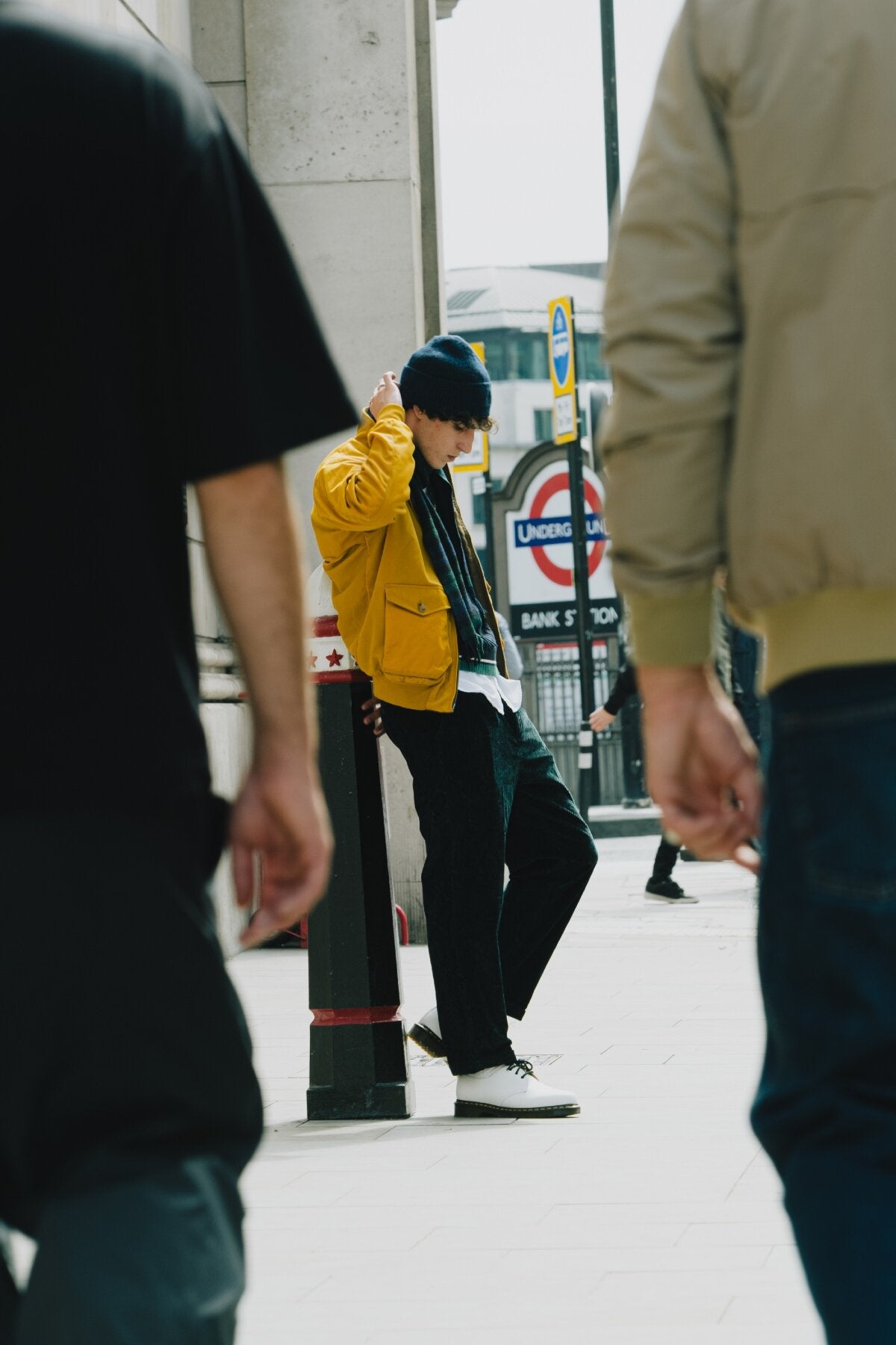 • • Internal pocket in a contrasting colour with single button closure and British Millerain label