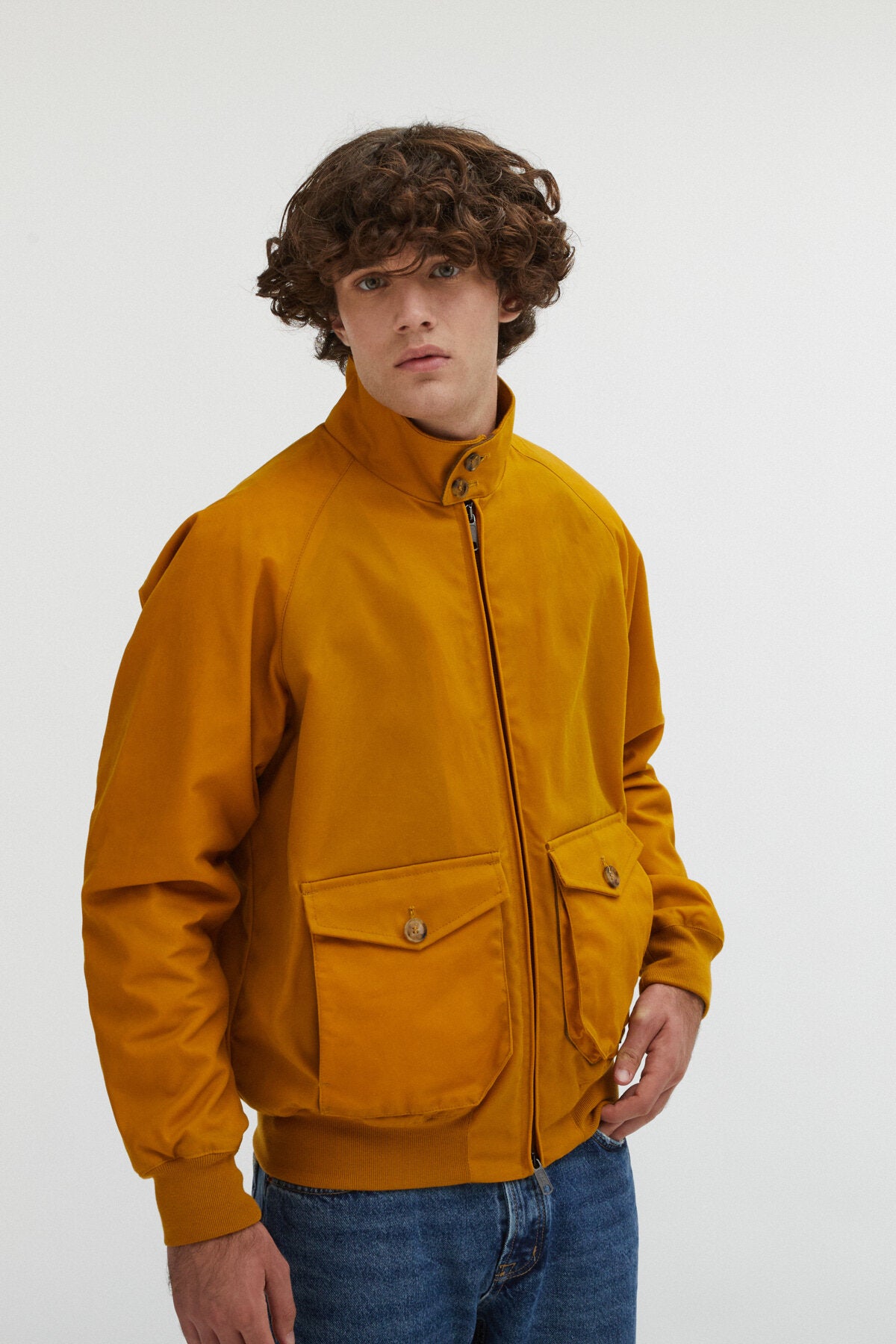 Be ready for the wet and windy weather with our G9 Waxed Pocket Jacket made from British Millerain waxed cotton, the original manufacturer of this fabric since 1880. It is an Authentic Fit jacket making it more spacious and relaxed than the Regular Fit -found in our classic G9 Harrington. The jacket has made a slight change to the traditional G9 features, instead of its signature slanted side pockets, we have inserted two bigger pockets in the centre of the jacket. Other than this new addition, its other features include the G9's iconic umbrella back yoke and its classic two-button dog ear collar. Try wearing it with our Waxed Bucket Hat for maximum protection from the rain!