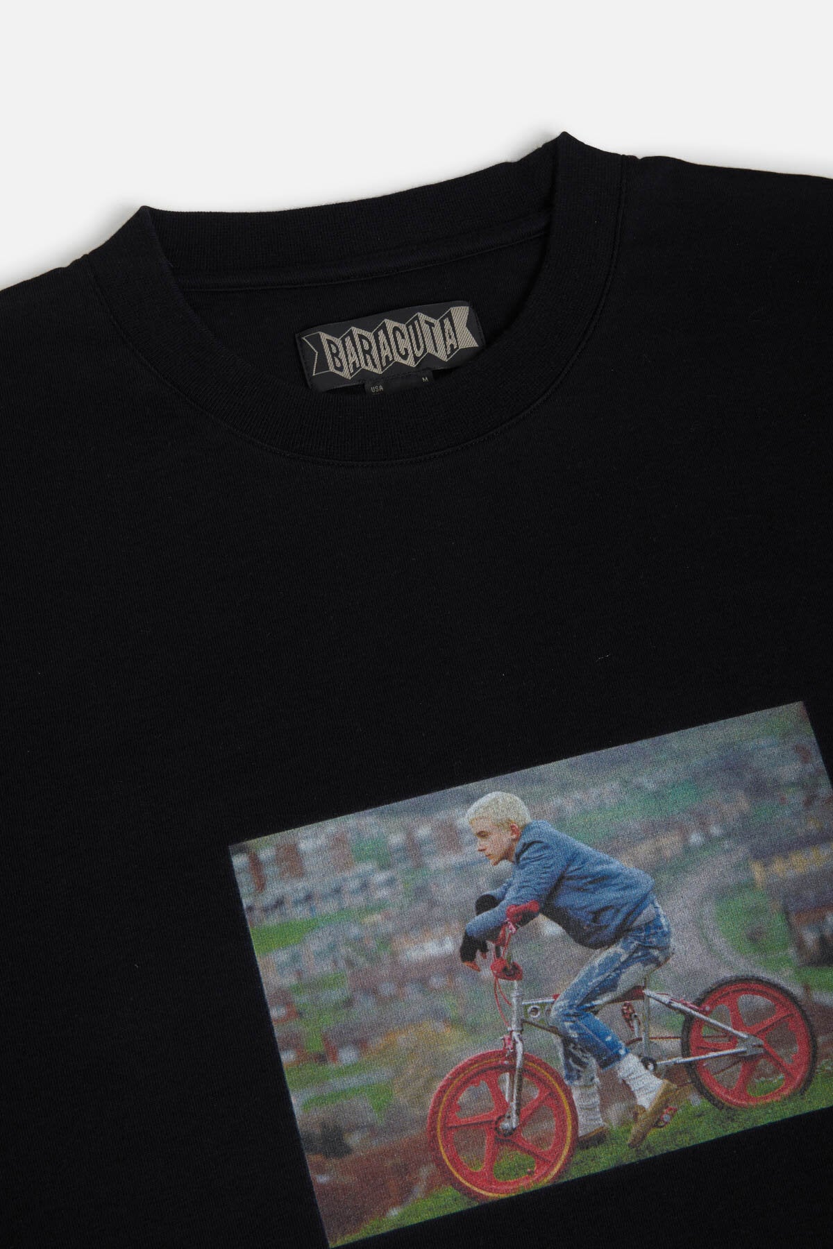 The Gavin Watson T-Shirt 2 puts his photography on a 100% cotton crewneck tee, with a striking print across the chest and the Baracuta logo embroidered alongside. On the back, “GAVIN WATSON BARACUTA SS26” marks the collaboration.