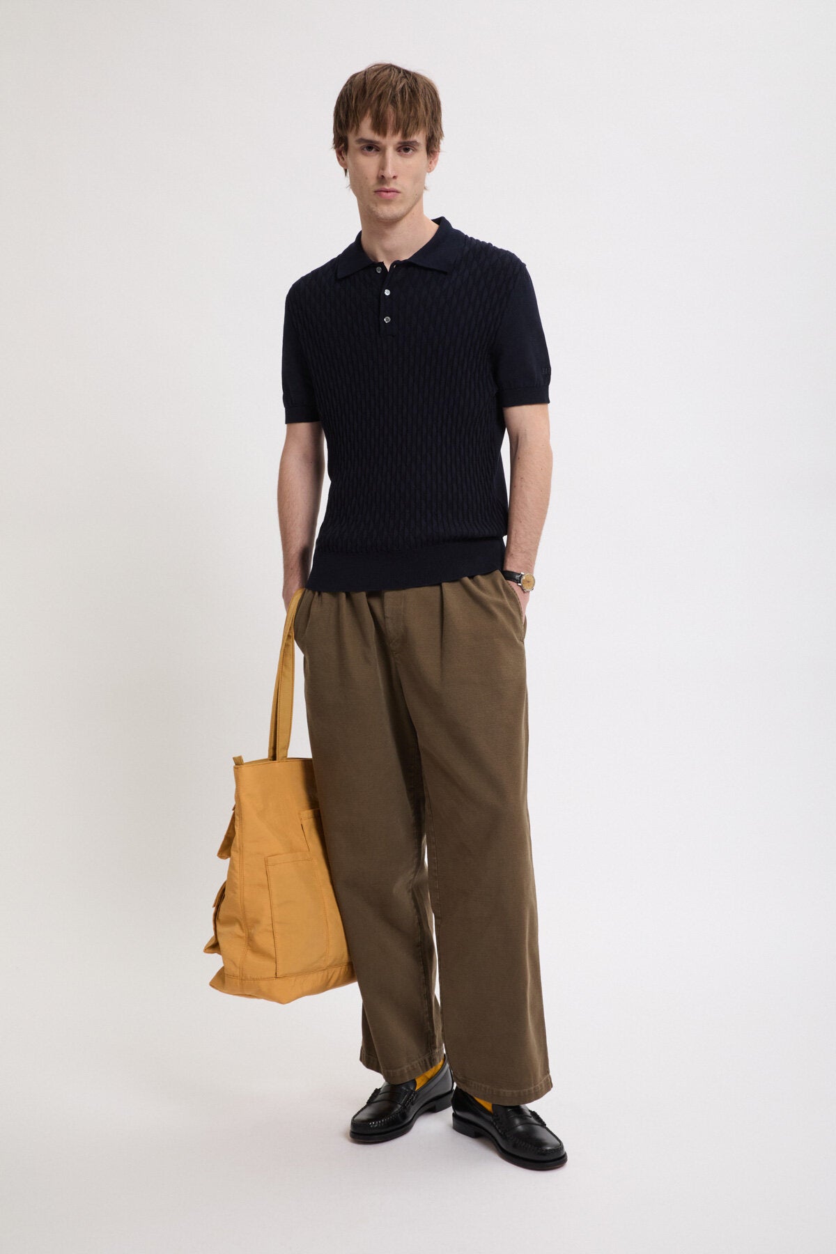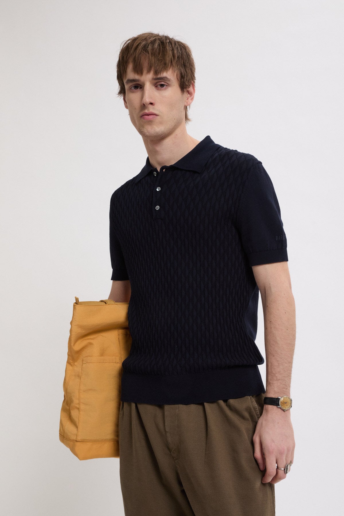 • The Pattern Stitch SS Polo is made from 100% cotton, carefully selected for its durable finish. Cotton provides natural breathability and resilience, making it ideal for everyday wear. The standout feature is the diamond-pattern stitch on the front, a detail achieved through careful knitting.