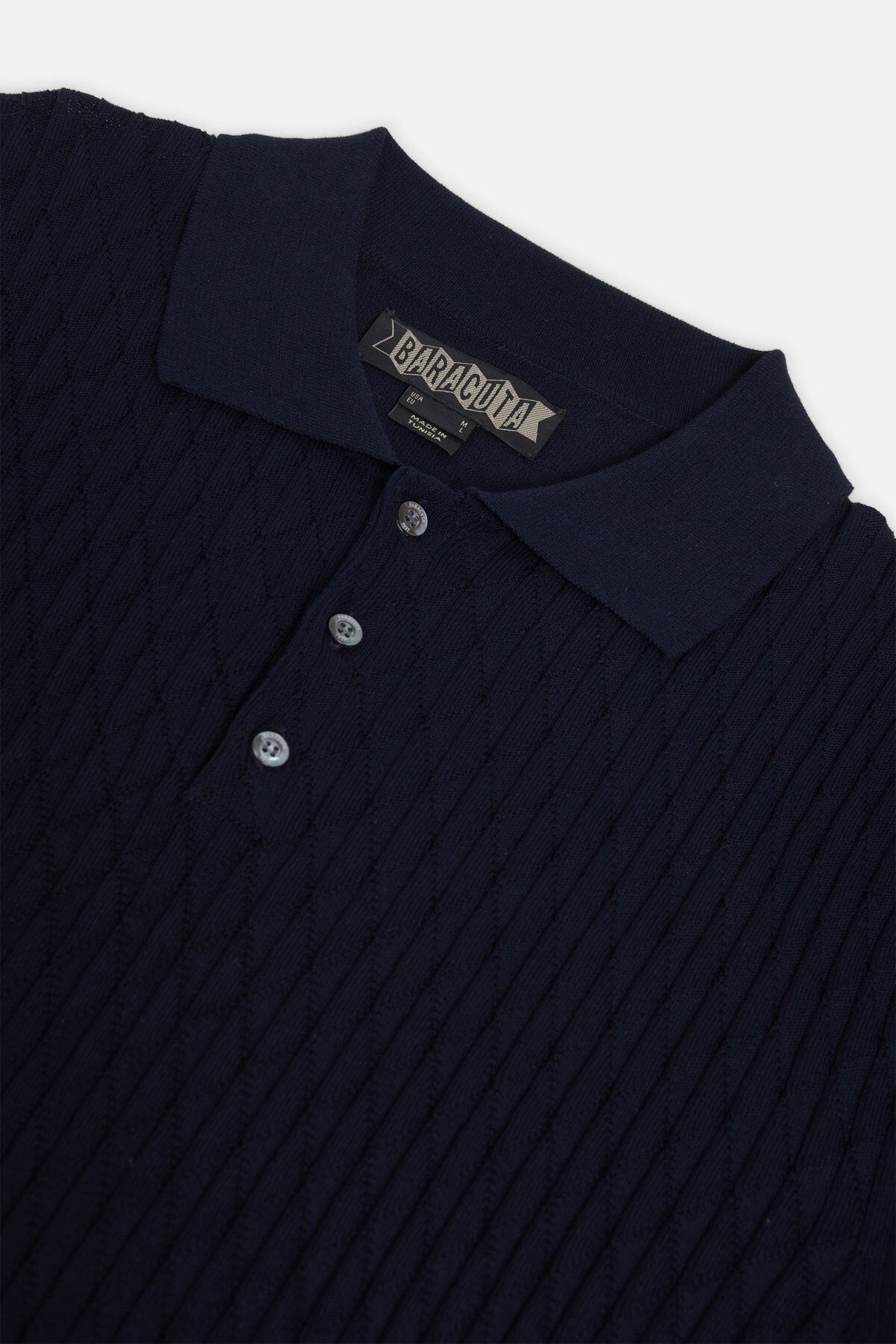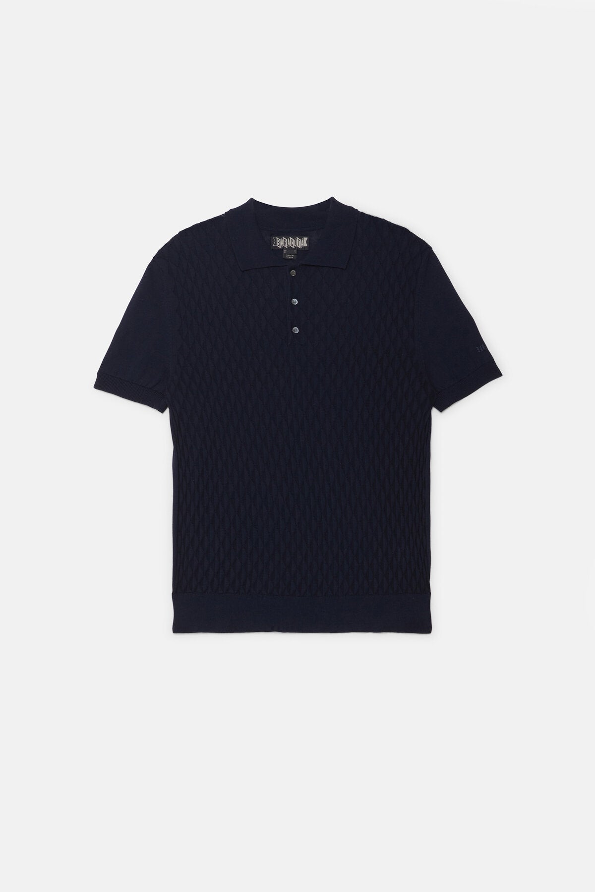 Baracuta uses UK sizes. The Pattern Stitch SS Polo is Slim fitting