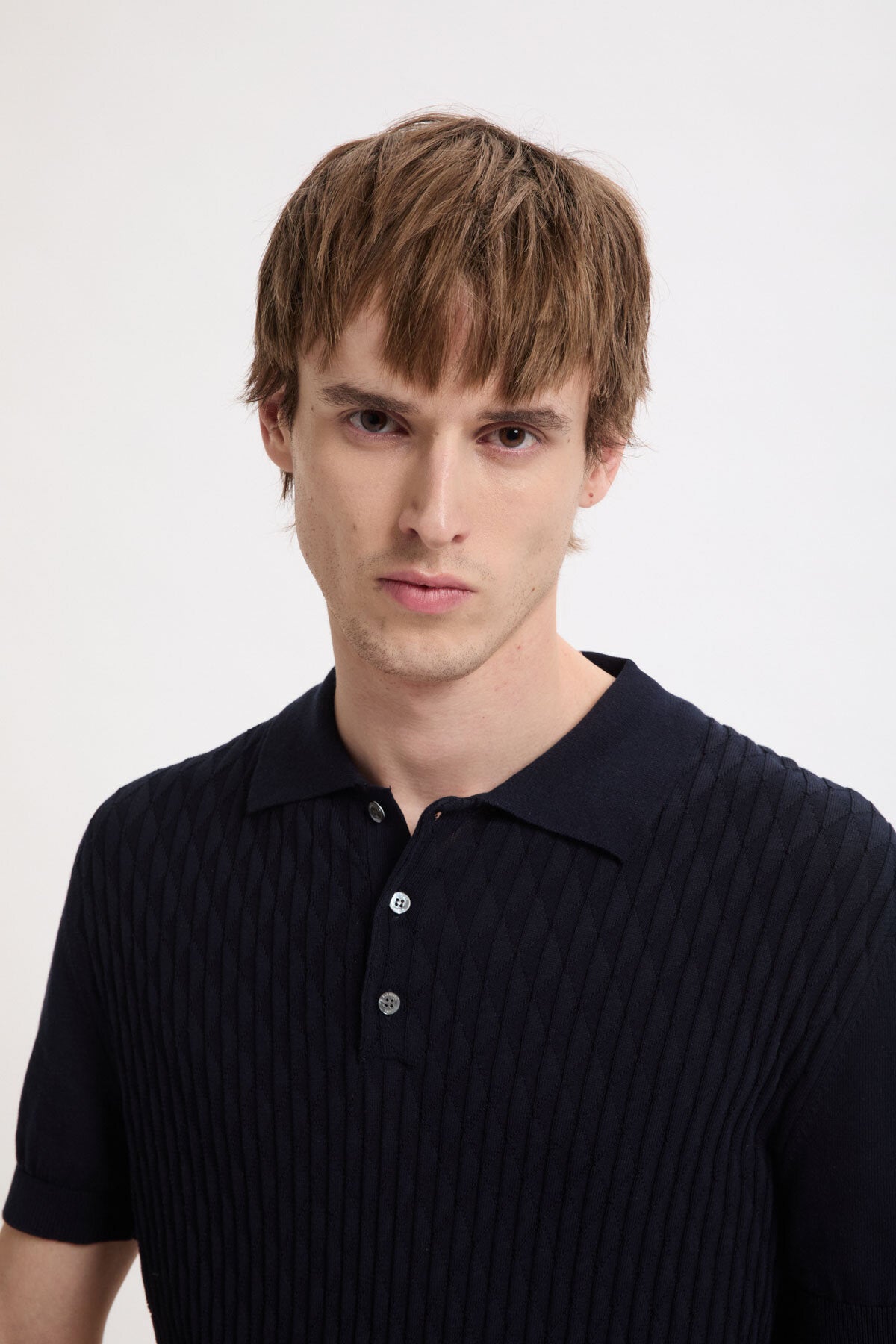 The Pattern Stitch SS Polo is made from 100% cotton, carefully selected for its durable finish. Cotton provides natural breathability and resilience, making it ideal for everyday wear. The standout feature is the diamond-pattern stitch on the front, a detail achieved through careful knitting.