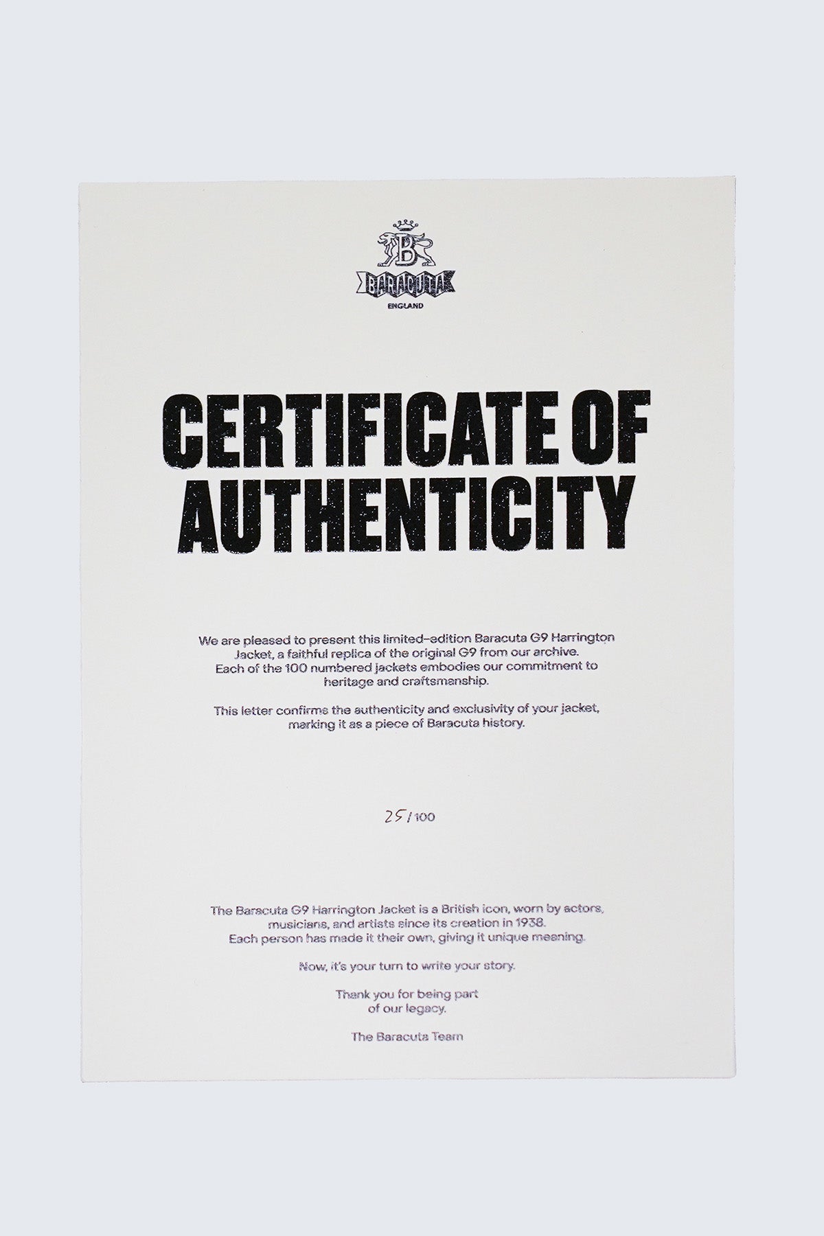 Each of the 100 numbered jackets embodies our commitment to heritage and craftsmanship, marking it as a piece of Baracuta history. Proudly made in the UK, it is a true must-have and a testament to our legacy.